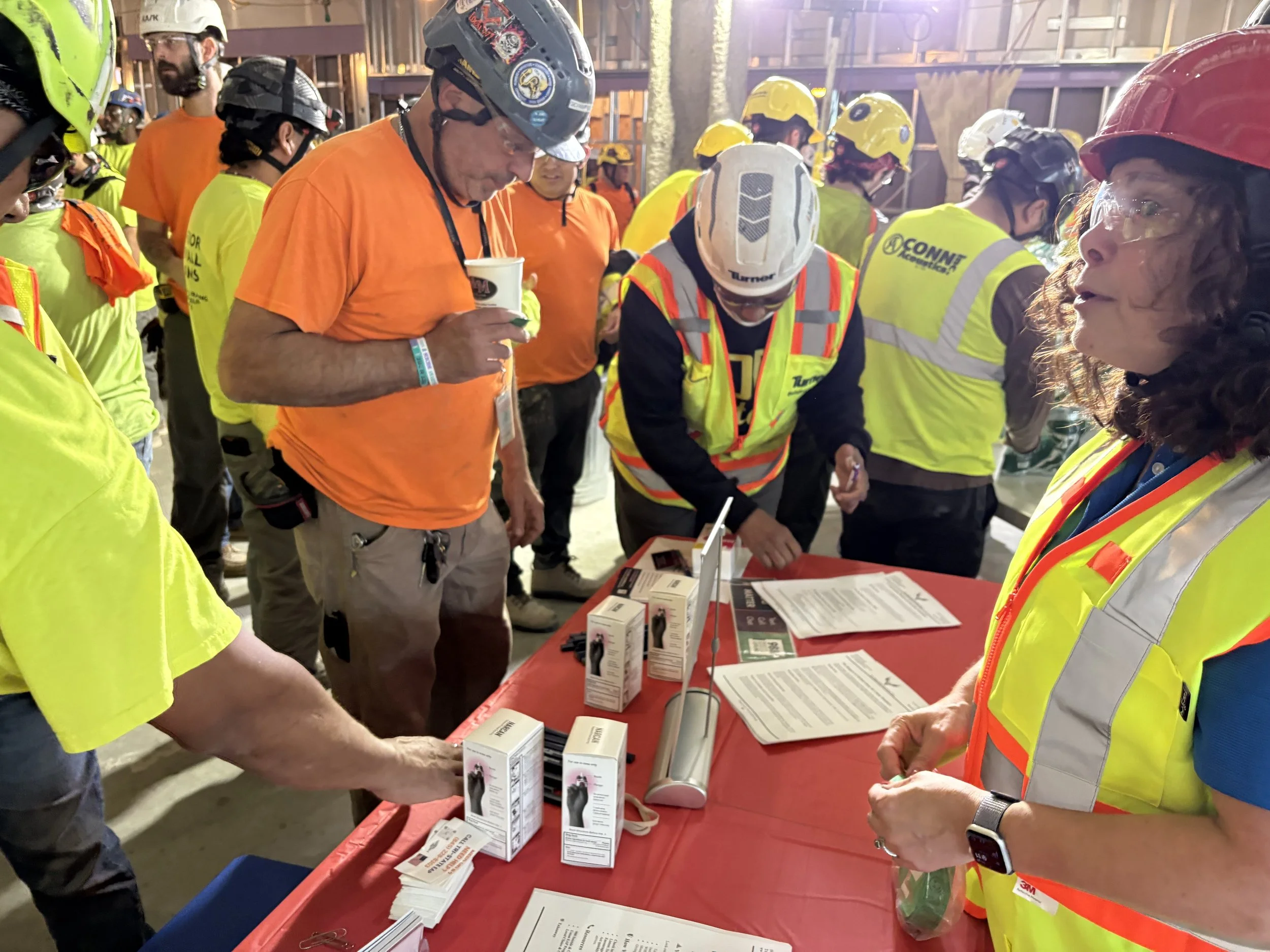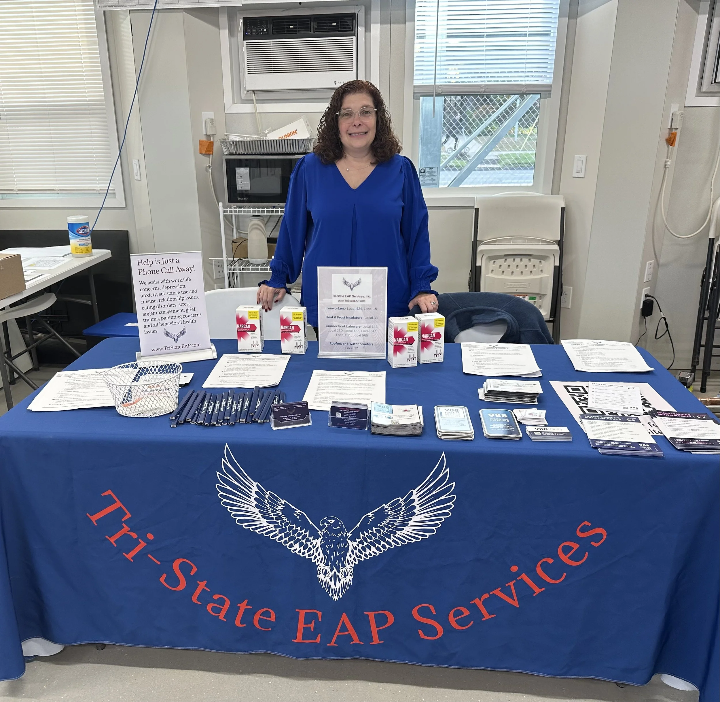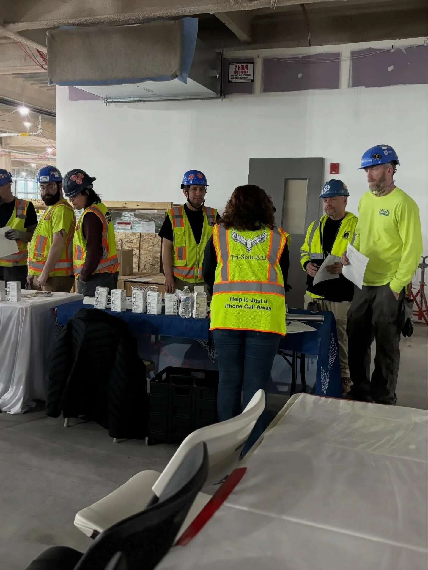 Tri-State EAP staff and construction workers at an on-site information fair — sharing resources and support services for union members.